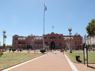 Anyway - aside from the bad attitude our guide had, we did get to visit many sights and colorful neighborhoods in Buenos Aires - including the neighborhoods of La Boca, San Telmo, Recoleta, and the City Center where we saw Casa Rosada, The Cabildo, and other impressive looking government buildings. In the square in front of the Casa Rosada there were large groups of people staging a workers protest and there were barricades in place to prevent crowds from accessing Casa Rosada itself. Another interesting fact we learned is that the President is a woman, and when she goes to work at Casa Rosada she is flown in by helicopter. After the city center we visited the cemetery at Recoleta - filled with hundreds and hundreds of ornate family burial tombs that are still used today. Many cats also call the cemetery home - whom you will see in some of the photos.